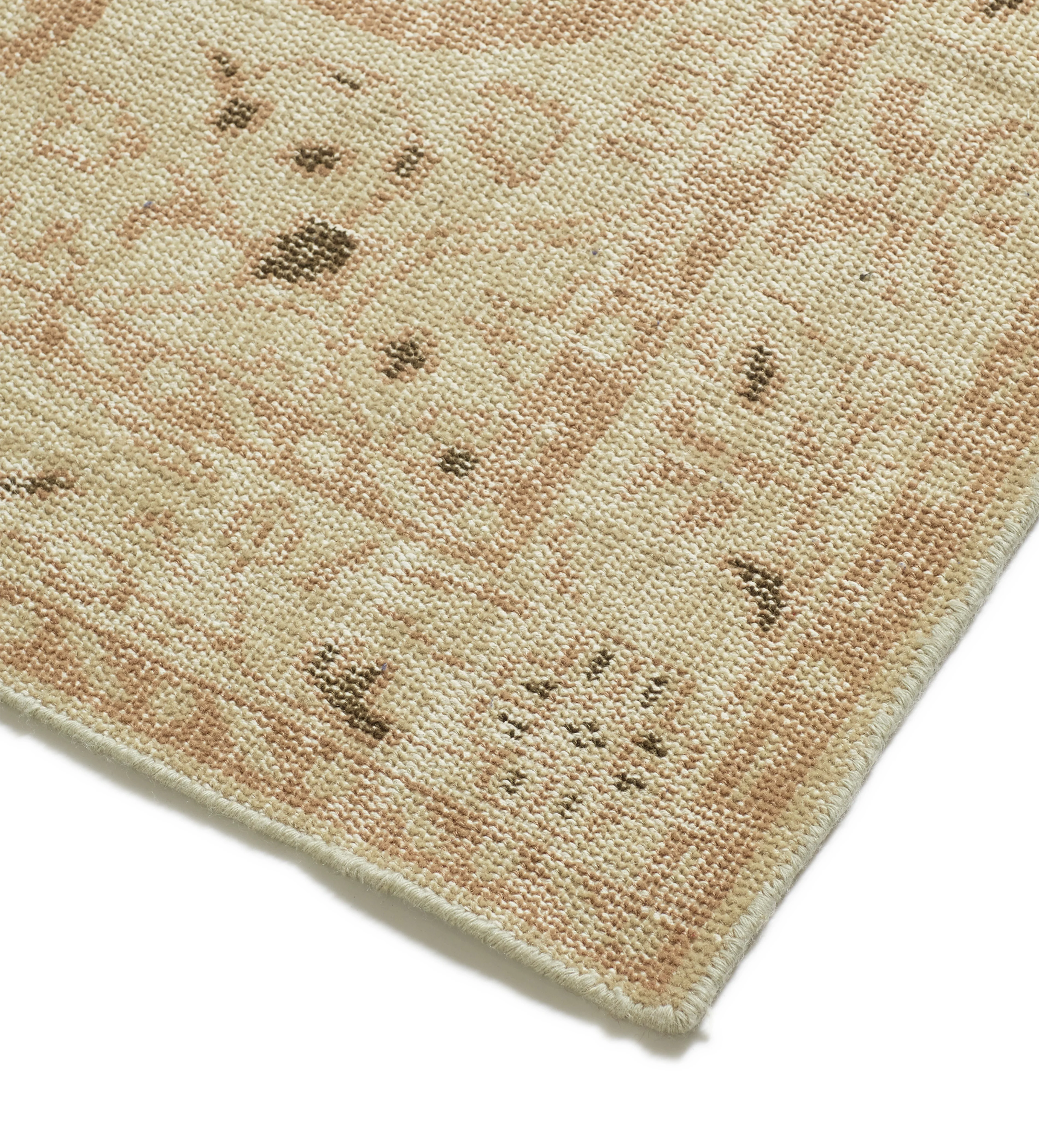 The Avaley Rug has a pretty pattern of curling fronds and abstract florals in a Washed Rose hue, crafted using a traditional hand-knotting technique that originates from Persia. The wool is first sorted by hand and spun into yarn,then washed and dyed before skilled artisans embark on the knotting process. A designer draws out the design on paper so the weaver can determine the size and pattern of the rug and adjust their handloom accordingly. A maximum of three weavers work together on one handloom, carefully binding the vertical warps around the horizontal yarns from the bottom upwards until it is complete.