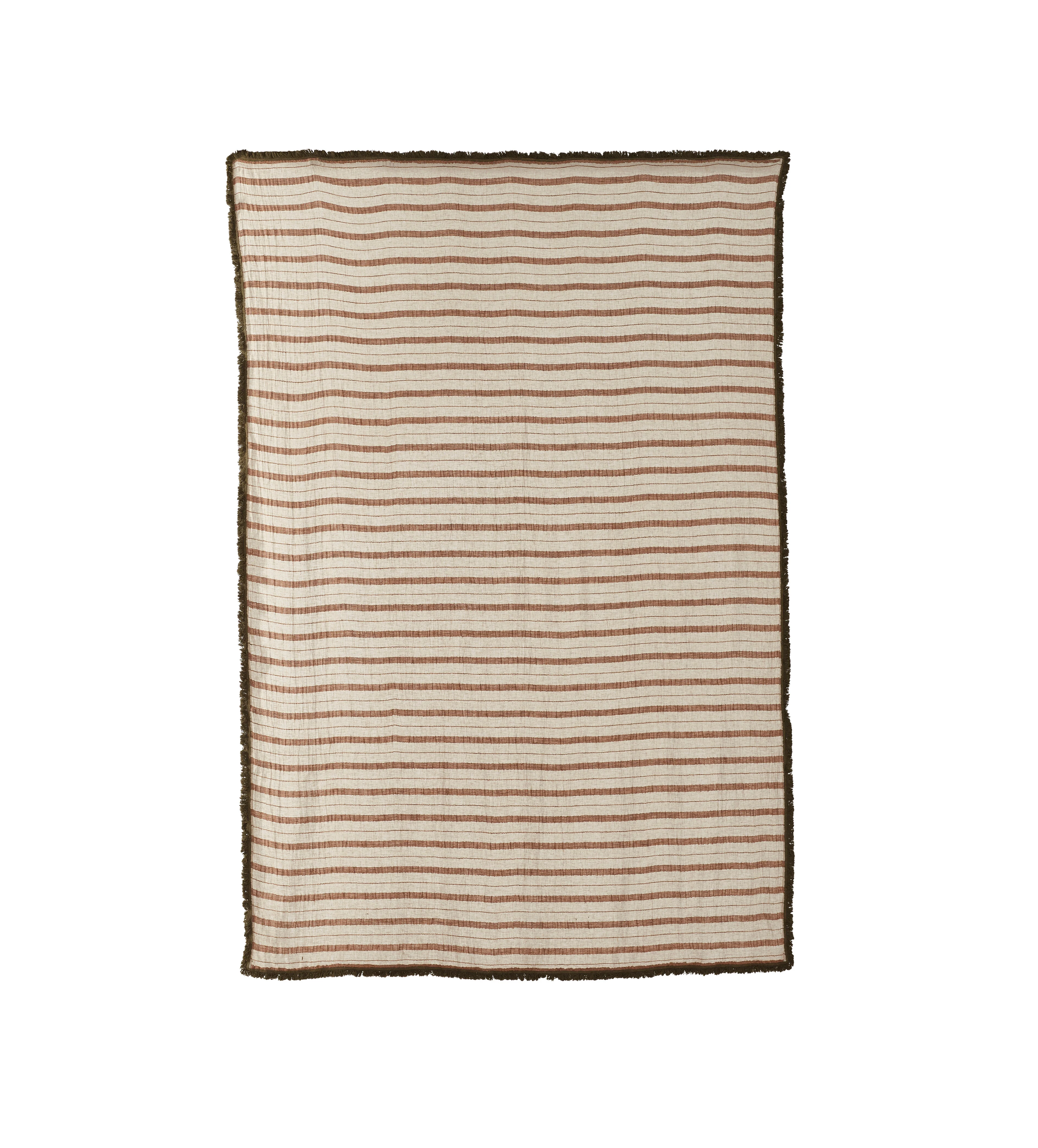 Our linen Avonlea Throw is crafted from natural-hued yarn, woven with fresh spruce thread in a fine, uneven stripe and edged with a matching fringe. Made by a team of skilled artisans that have honed their craft over many centuries, the process involves dyeing the yarns, weaving, finishing and stitching to form the finished article.