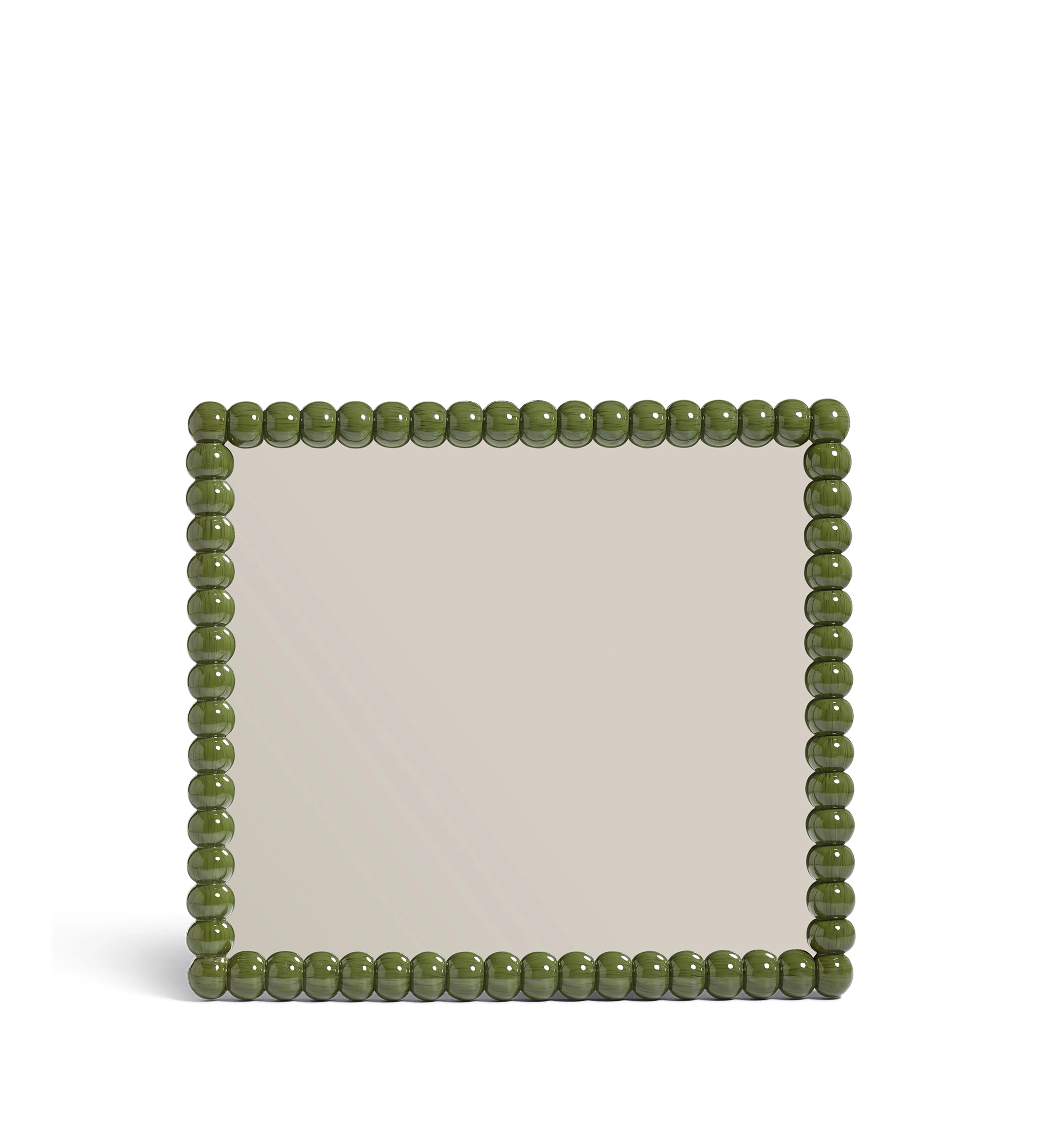 Our Bobina Mirrors are inspired by bobbin furniture - otherwise known as spool furniture - from the late 17th century. This style had legs that were generally lathe-turned into ornamental shapes in order to make a feature of them. Drawing on this characteristic, the frame of our Bobina Bobble Mirror is hand carved from mango wood into pleasing spherical shapes, which is then hand painted a pleasing Spruce green and finished with a high gloss which accentuates its form.