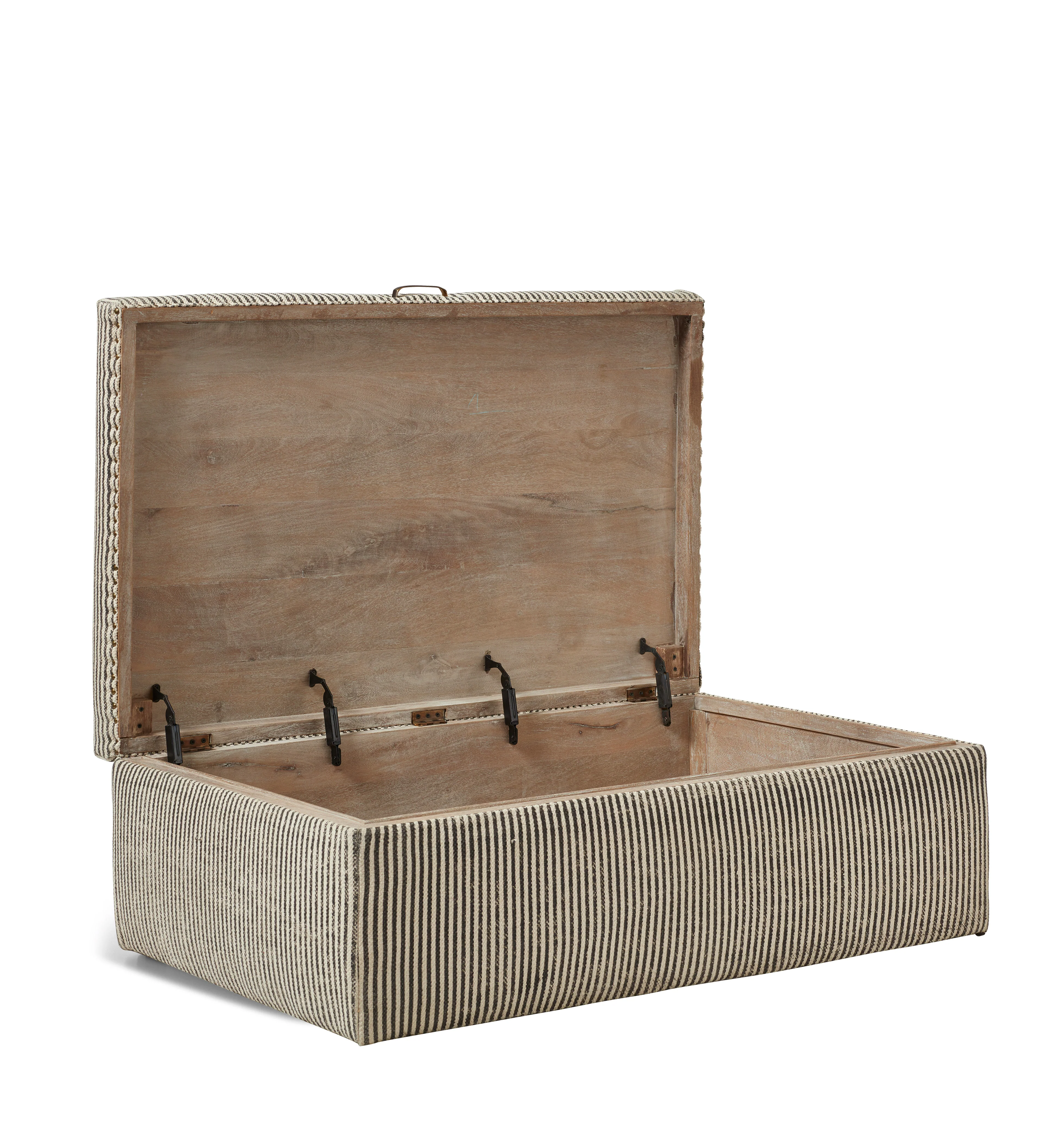 The nautical charm of this stripe-covered ottoman is undeniable, hence its name - a tribute to the literary adventures of Robinson Crusoe. This piece easily doubles as an extra seat or place to rest your feet, thanks to its hard-wearing cotton upholstery, while its generous interior is sizeable enough to store anything from blankets to boots - just watch out for stowaways.