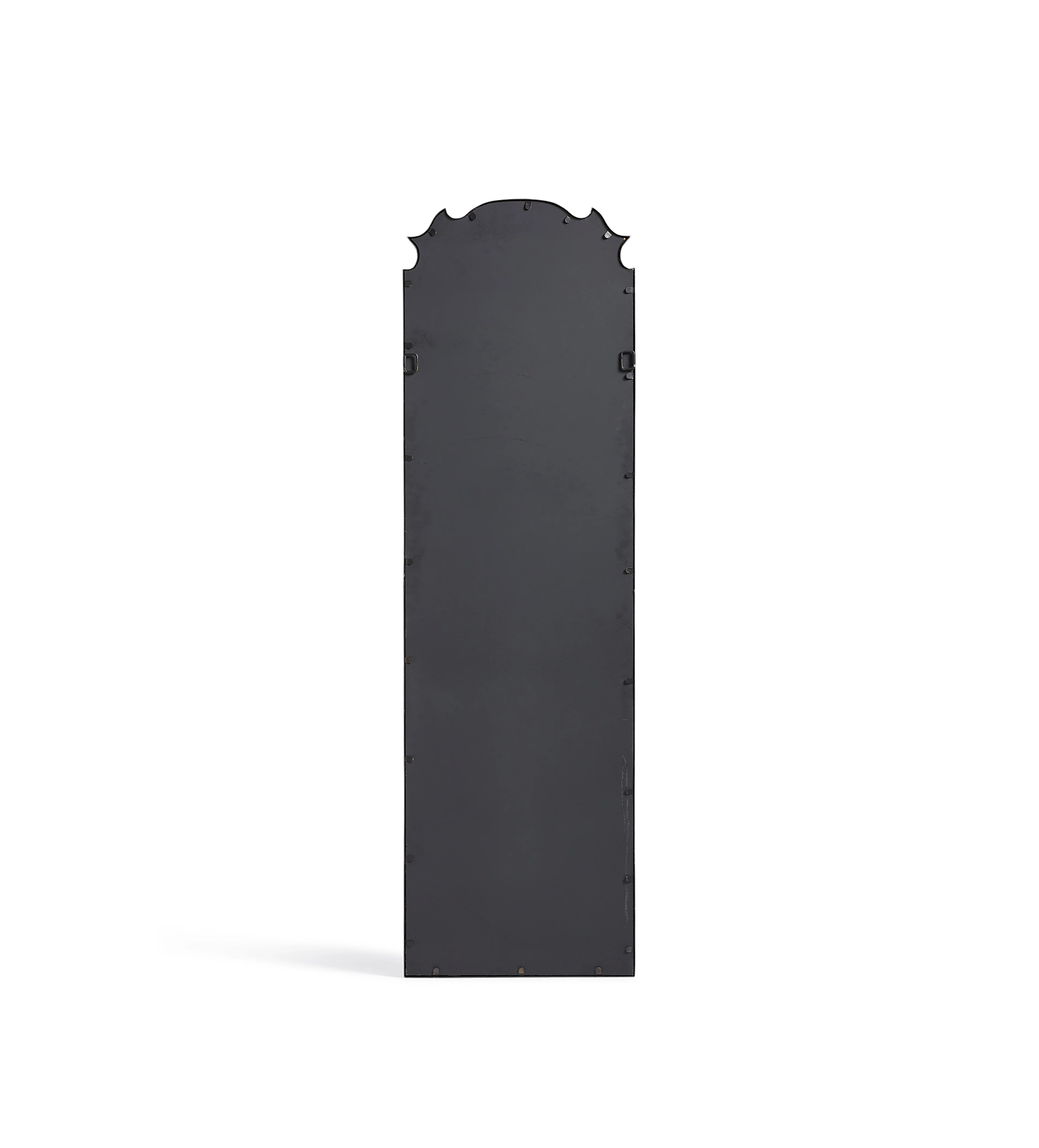 The frame of the Faie Mirror is cut and welded from iron with a subtle hammered texture and antique brass finish. It is designed to hang from a wall or be leant against a wall as a floor-standing piece for a full-length reflection. The full-length design had been carefully formed by skilled artisans through a three-stop process of hammering, welding and finishing.