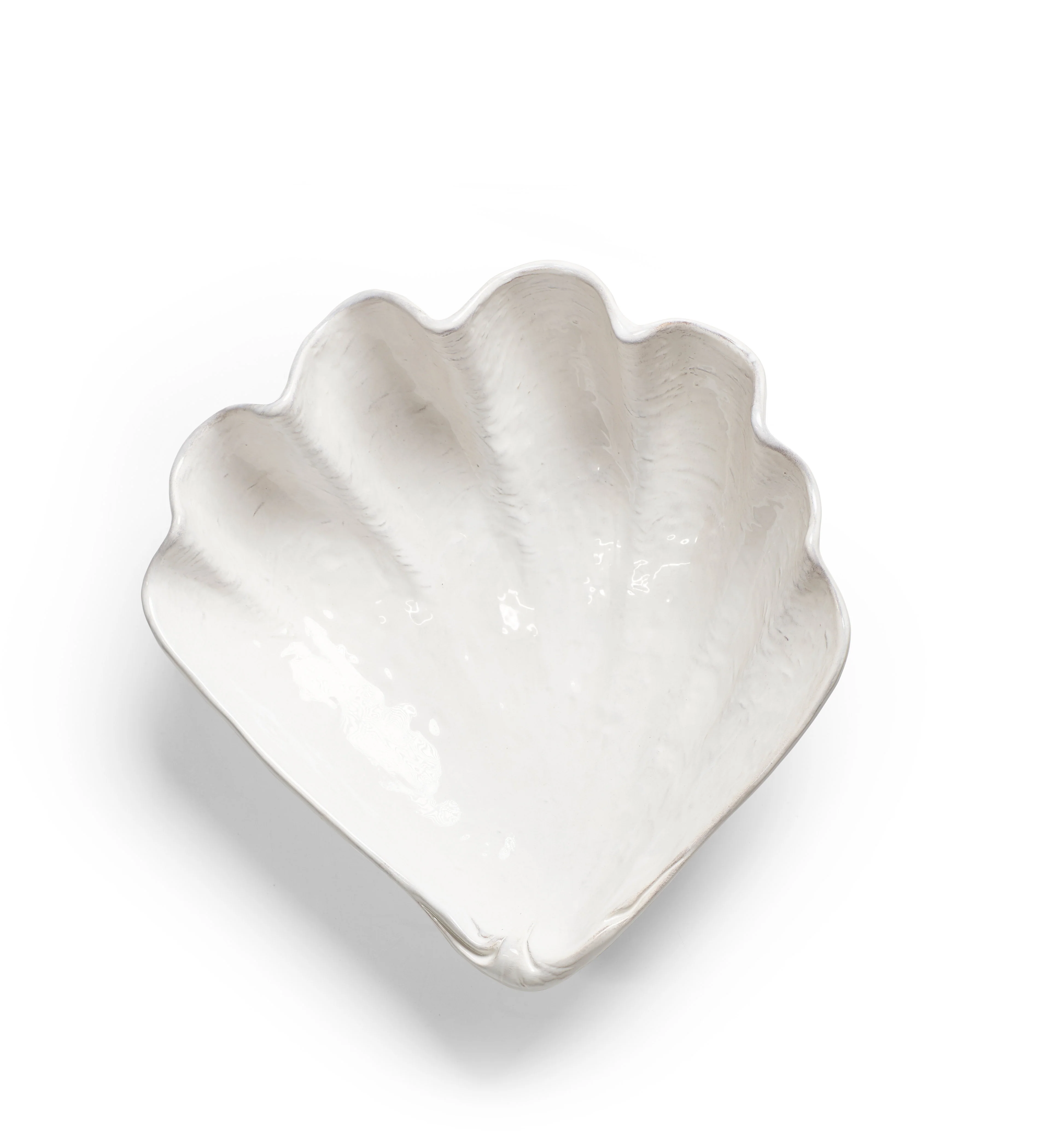 Hand-crafted in Italy with a hand-dipped, layered white glaze, the Large Otranto Bowl is named after the Italian town famed for its seashells. Its sculpted, seashell-inspired shape adds marine charm and personality to the table, while pairing beautifully with other dinnerware for a fun, layered look.
