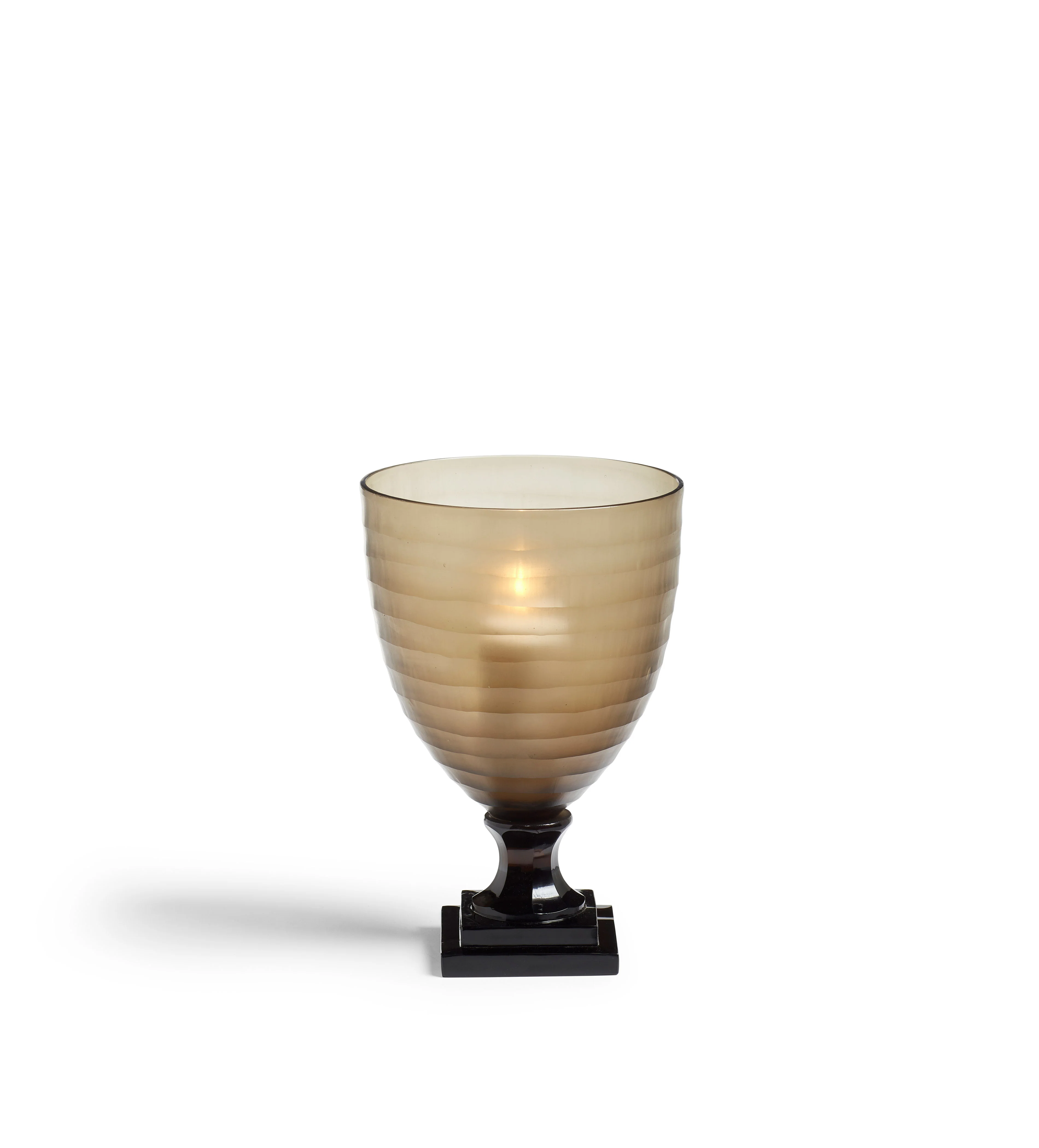 With a name that means my light in Hebrew, the Liora Candle Holder brings quiet elegance to any setting. Hand-cut from glass by skilled artisans, each piece features a subtle cascading colour effect, shifting softly through a warm taupe tone. The sculptural form is grounded by a square pedestal base, while the glass catches and diffuses candlelight beautifully, creating a calm, atmospheric glow.