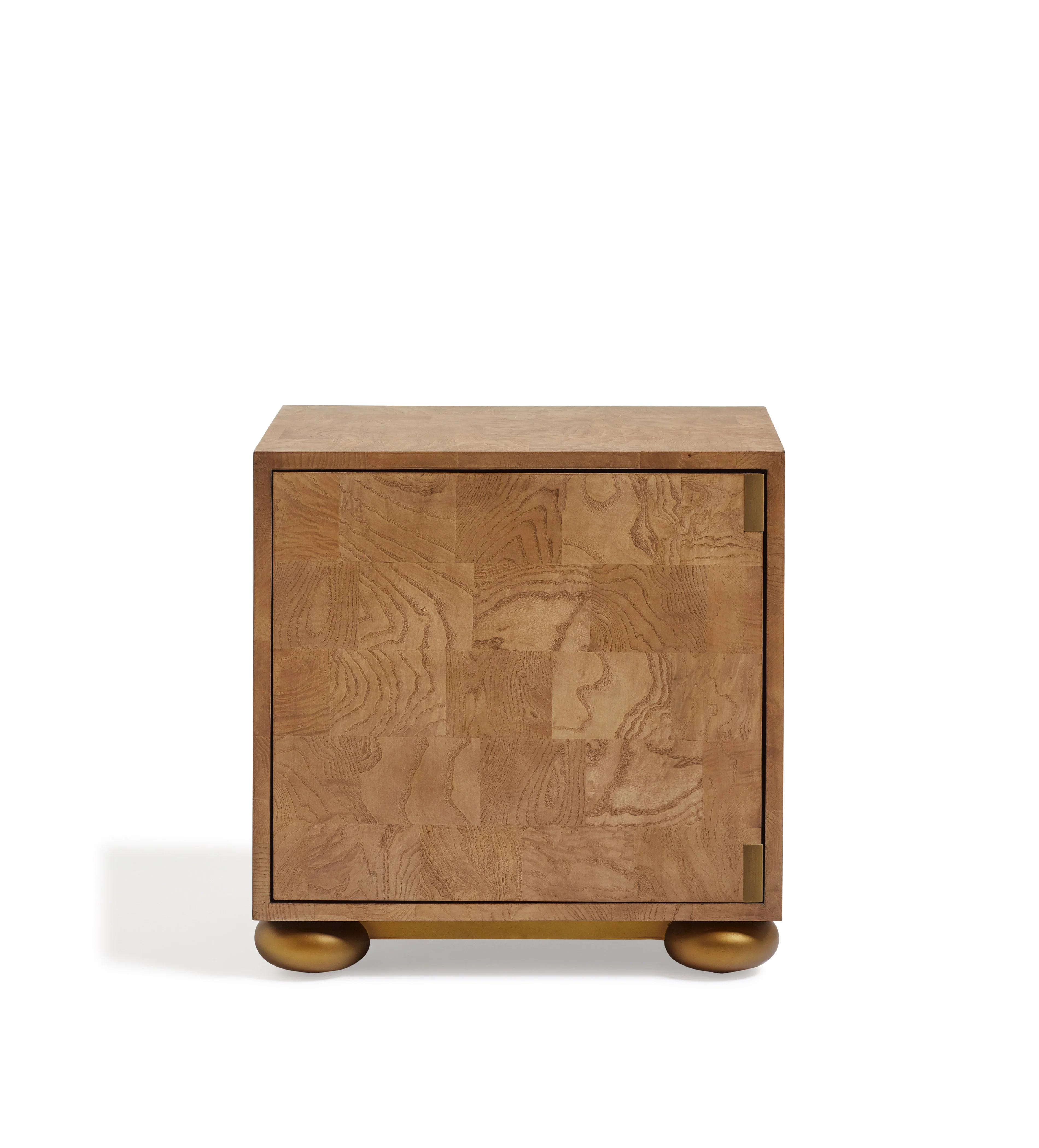 In Greek myth, everything Midas touched would turn to gold, therefore it seemed a fitting name for our Midas Range, with its touches of gold on the bun feet and metal plates at each corner. The beautiful and unusual grain of the wood is produced from highly sought-after burl wood - this is a cross section of the knots that form on trees, and so features a swirling pattern referred to as a 'wild grain', that requires highly skilled craftsmen in order to cut it without splitting the wood. Due to the material and artisanal techniques used for this side table, each piece will have individual characteristics that add to their charm.