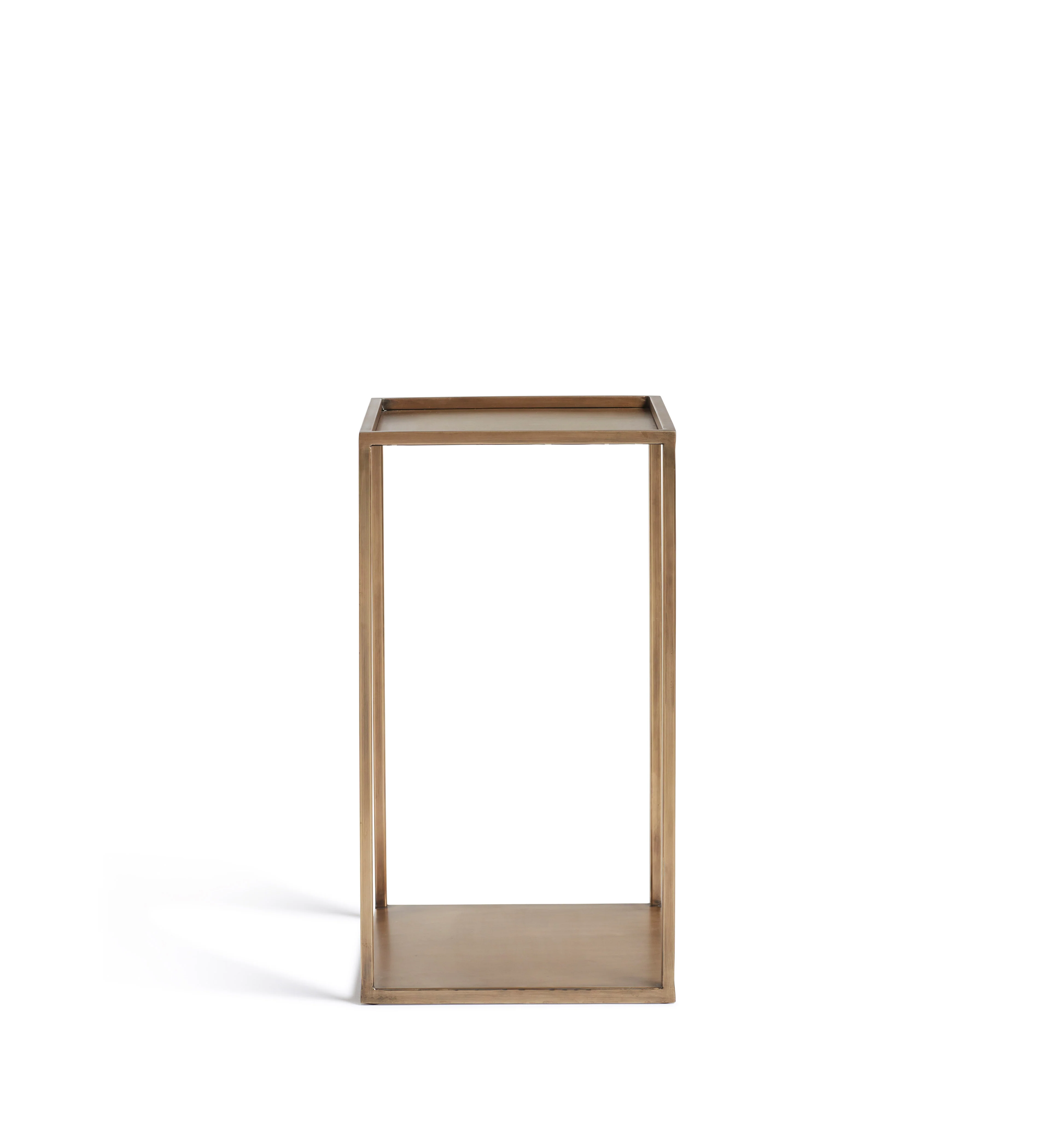Our Neli Side Table has a classic look with two levels to use as surfaces. Its steel construction is hand welded, electroplated with brass and then oxidised for the desired antique look. Due to the artisanal techniques and finishing process each piece will have individual characteristics and will not be identical.