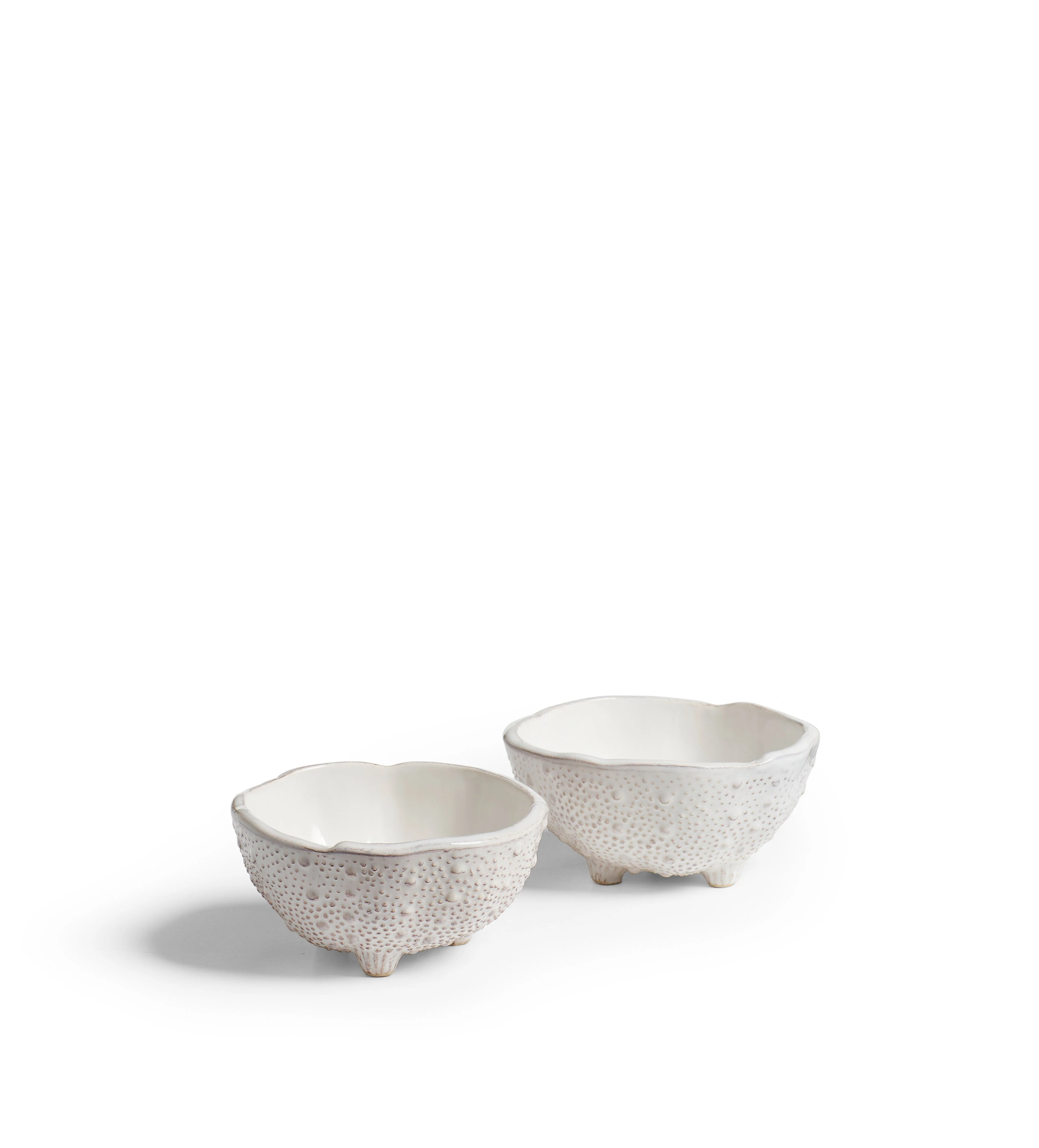 Bring a nautical touch to your dining table with our Nereid Set of Two Bowls. Handmade in Italy and hand-glazed, these elegant bowls are crafted from white clay and beautifully finished with a white glaze. They are produced in a village outside Florence with over 50 years of ceramic expertise. Due to the artisanal crafting process, each piece will have individual characteristics that add to their charm.