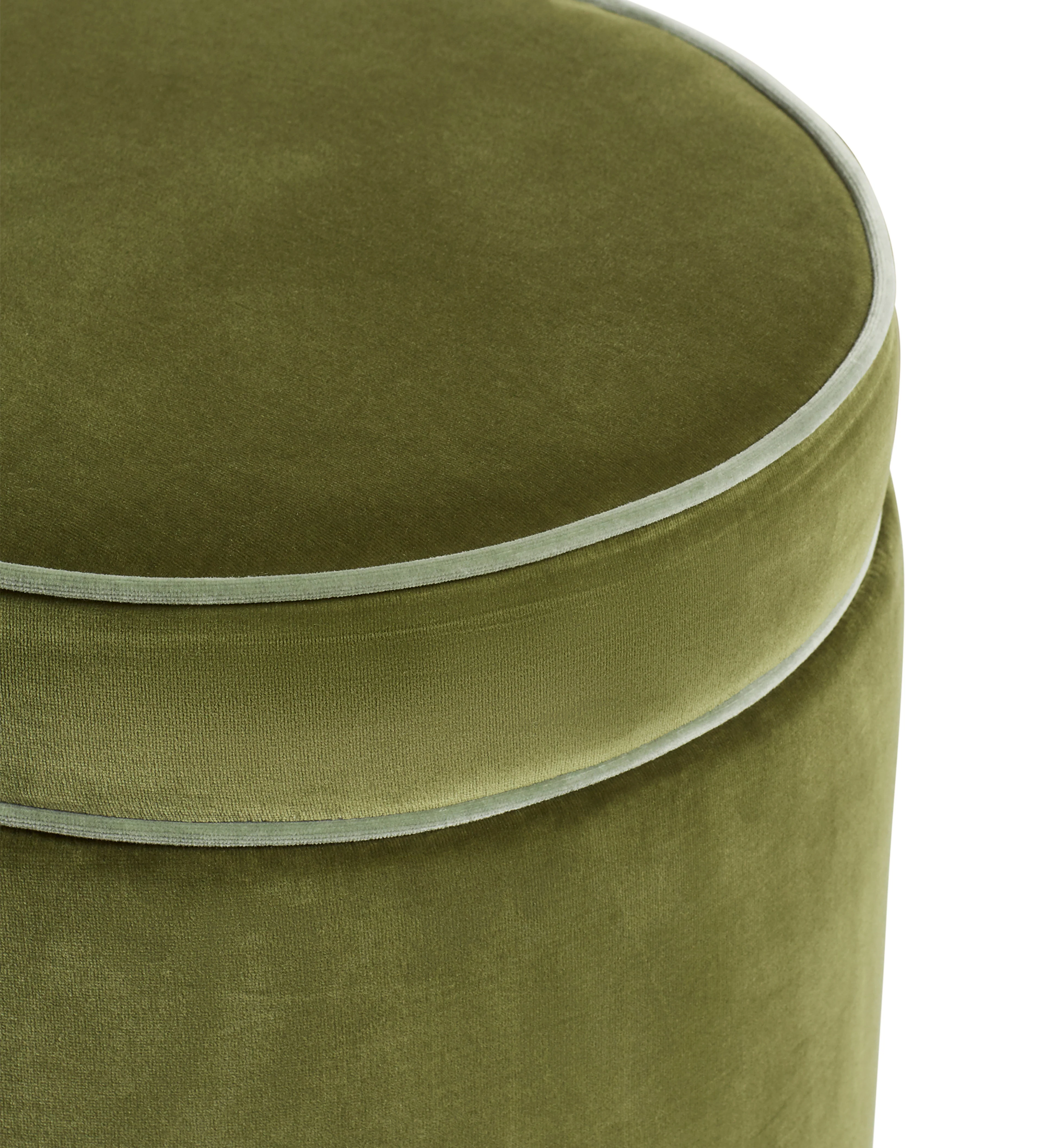With a name meaning 'secret' in Tongan origin, the Samena is cleverly designed with hidden storage: its seat is a lid that lifts off and slots back in securely. Upholstered in muted green velvet, it is finished with complementary piping that disguises its seam while looking pretty.