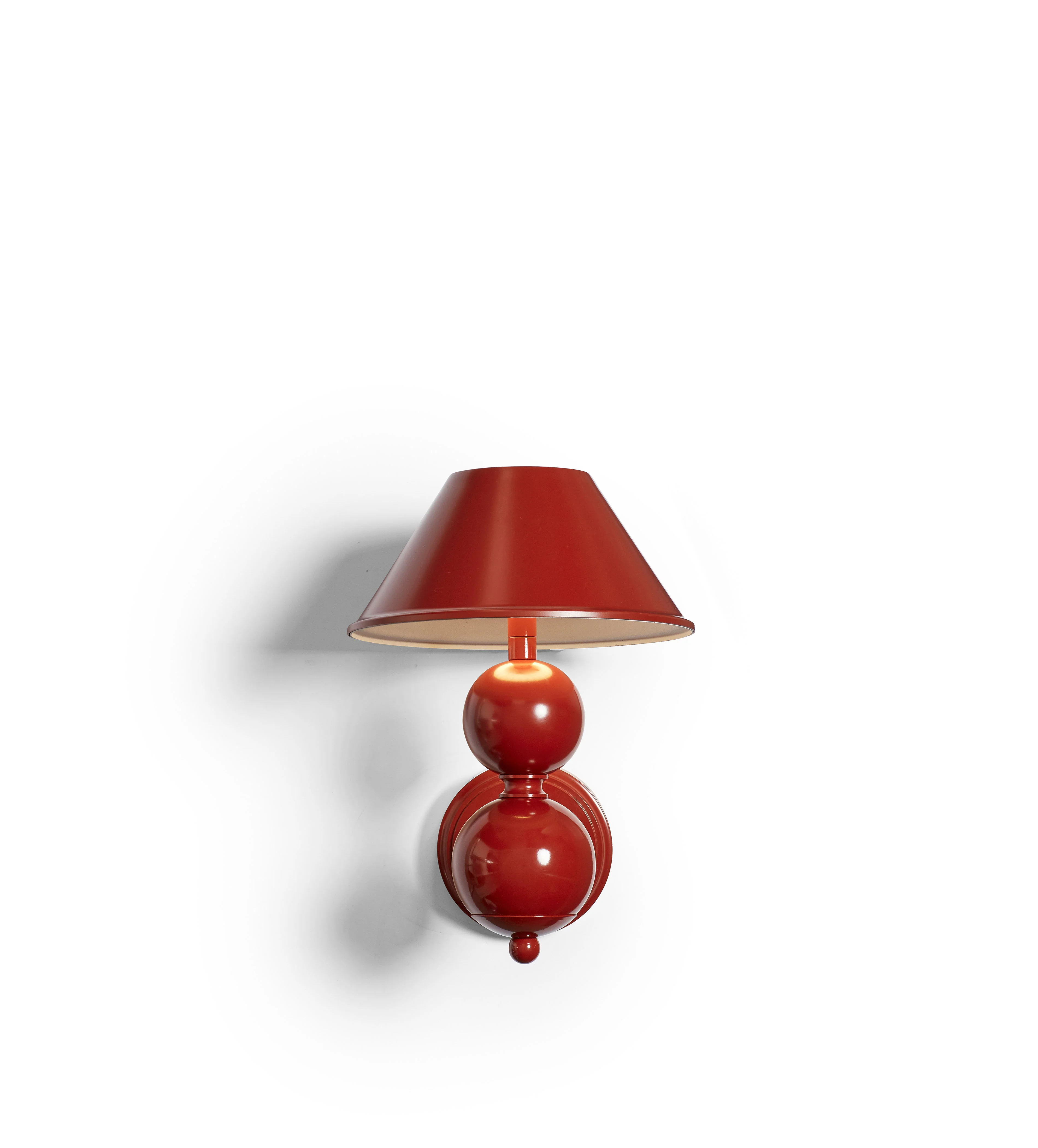 Our incredibly popular Triya Wireless Table Lamp is now extended into a wireless wall lamp. It doesn’t get more playful than the Triya’s spherical stem. Crafted from iron and steel, the orbs are hand-painted a deep red, polished and finished with a matching metal shade.